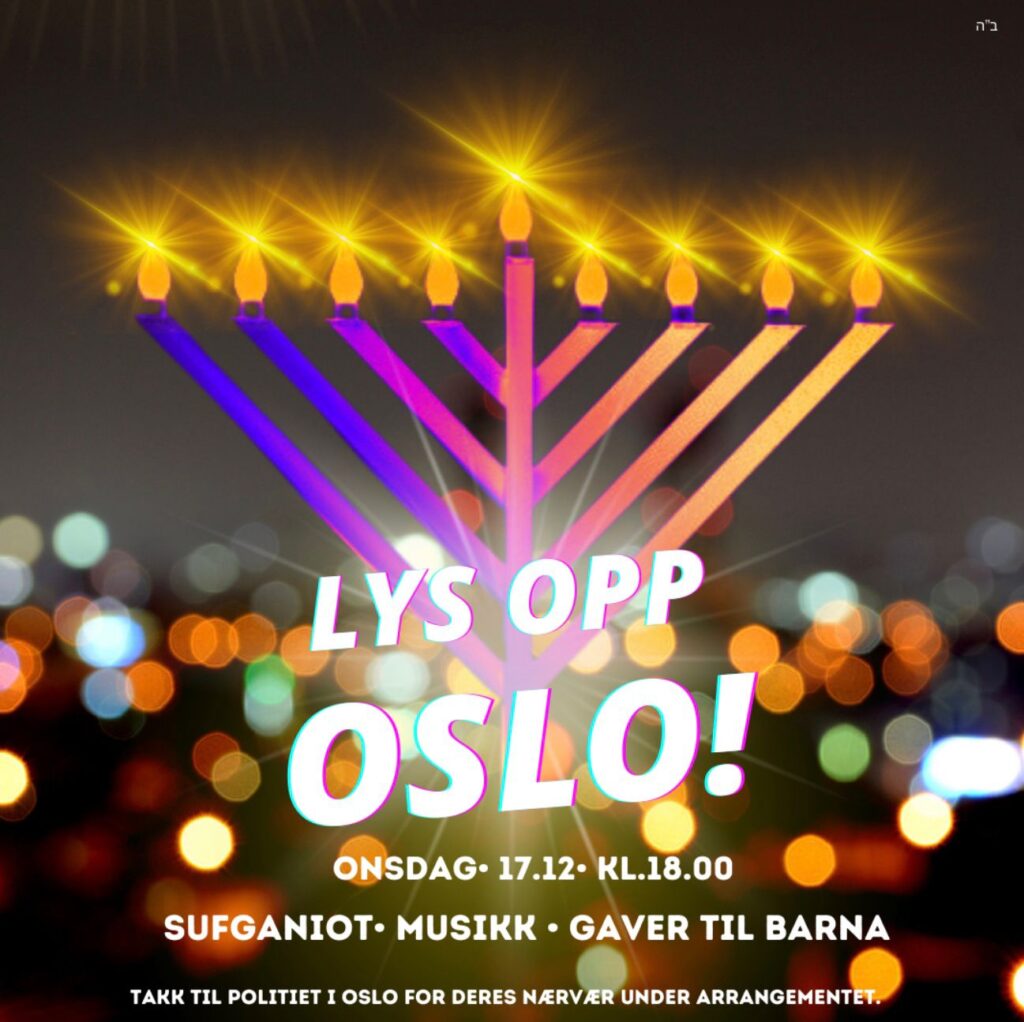 Denne uken feirer vi også med Chabads store Hanukkah-tenning i Oslo onsdag 17. desember kl. 18.00 – med sufganiot, musikk og gaver til barna.